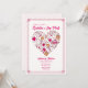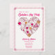 A romantic Galentine's Day invitation featuring playful cupid angels, clinking wine glasses, cake slice, gifts, and hearts arranged in a heart shape. The line art style in pink and gold creates a whimsical yet elegant look. Perfect for celebrating love and friendship with your favorite gals. Fully customizable with your party information on the striped background.