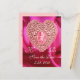 CUPID LACE HEART SILK FUCHSIA CLOTH , Pink Red Announcement Postcard