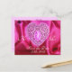 CUPID LACE HEART SILK FUCHSIA CLOTH , Pink Violet Announcement Postcard