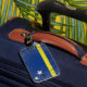 Navigate airports with Caribbean island flair! This distinctive luggage tag features Curacao's vibrant blue flag with two yellow stars representing this Dutch Caribbean gem. Perfect for identifying bags while travelling to or from this colourful island paradise. Whether you're exploring Willemstad's pastel architecture, diving pristine reefs, or connecting through international airports, this durable tag ensures your luggage stands out while showcasing Curacao's unique position as a Caribbean cultural crossroads and tropical destination.