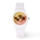 Watches are the best way to express yourself. The woman's watch featured the image "Curiosity of Passion" by Carmen Fine Art in shades of pink, red, grey, and black in a modern wall decorative style. “Why is it that when one man builds a wall, the next man immediately needs to know what's on the other side?” (George R.R. Martin)