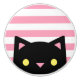 Curious Black Cat | Stripes | Pink & White Ceramic Knob