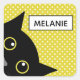 Curious Black Cat Yellow Polka Dot Personalised Square Sticker