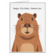 A charming illustration of a capybara looking straight ahead with a calm and gentle expression. The image captures the capybara’s unique features, including its round face, expressive eyes, and distinctive whiskers. The minimalist style and earthy tones add to its endearing appearance, making it an appealing visual for animal lovers.