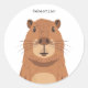 A charming illustration of a capybara looking straight ahead with a calm and gentle expression. The image captures the capybara’s unique features, including its round face, expressive eyes, and distinctive whiskers. The minimalist style and earthy tones add to its endearing appearance, making it an appealing visual for animal lovers.