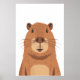 A charming illustration of a capybara looking straight ahead with a calm and gentle expression. The image captures the capybara’s unique features, including its round face, expressive eyes, and distinctive whiskers. The minimalist style and earthy tones add to its endearing appearance, making it an appealing visual for animal lovers.