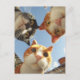 This adorable and whimsical image features three charming cats peering down with wide, curious eyes against a clear blue sky. Two ginger tabby cats and one black-and-white tuxedo cat create a delightful trio, each with expressive faces and soft, fluffy fur that brings warmth and playfulness to the scene. The perspective from below adds a humourous and endearing touch, as if the cats are inspecting the viewer with innocent curiosity. This digitally illustrated artwork is perfect for cat lovers and makes an eye-catching design for prints, greeting cards, stickers, mugs, t-shirts, and other fun merchandise. The vibrant colours, bright natural light, and photorealistic textures give the piece a cheerful and lifelike quality. Ideal for gifting or decorating, this cat-themed design captures a moment of feline curiosity that is both heartwarming and visually engaging. Whether for home décor or personal accessories, this image is sure to bring a smile to any cat enthusiast’s face.