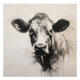 A captivating ink drawing of a cow's head stares directly at the viewer, its features melting into fluid drips of ink. The piece combines natural innocence with an abstract, artistic edge, inviting interpretation and emotion.
