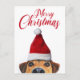 Curious Cute Funny Dog with Santa Hat Holiday Postcard