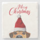 Curious Cute Funny Dog with Santa Hat Stone Coaster