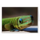 Close up photograph of a gecko in bright sunshine that appears to be smiling for the camera. Very few of the geckos are as obliging about holding still and posing as this little one was when I photographed him. His blue toes match his eyelids.