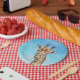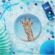Curious Giraffe with Blue Confetti Sky Paper Plate