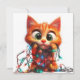 Curious Orange Kitten with Festive Lights Holiday Card