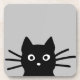 Curious Peeking Black Kitty Cat | Funny Animal Art Coaster