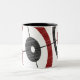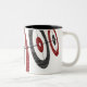 Coffee mug featuring three curling houses with red and charcoal rings. Perfect for curlers and curling fans.