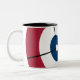 Coffee mug featuring three curling houses with red and blue rings. Perfect for curlers and curling fans.