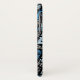 Cell phone case featuring a pattern of curling terms in shades of blue and grey on black background. Perfect for curlers and curling fans.
