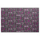 Fabric featuring a pattern of curling terms in sangria purple and grey on black background. Perfect for curlers and curling fans.