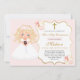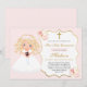 Curly haired Girl First Communion Soft Pink floral Invitation