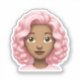 This emoji icon showcases a friendly face with gorgeous pink curly hair, bringing a fun and playful touch to digital designs. With expressive eyes and a warm smile, this emoji is perfect for adding personality and charm to any project. Ideal for messaging, social media, or avatars, this illustration embodies joy and creativity.