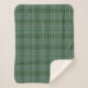 Handsome soft Sherpa fleece blanket with the front done in the classic Scottish green clan Currie tartan plaid pattern. Customise this cosy blanket with your own text. Available in three sizes.