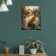 Graceful curry koi artwork featuring an elegant fish crafted from silky curry gradients, spice textures, herb flecks, rice pearl accents, and glowing saffron-gold tones. Gliding through a palace garden pond with lotus flowers, carved stone borders, bridges, lantern reflections, marble steps, and distant domes, this luxurious fantasy aquatic design feels serene and opulent. Perfect for bathrooms, kitchens, meditation rooms, Asian décor, or collectors of refined animal artwork.