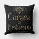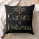 For all your magical needs, "Curses and Poisons" purveyors to the trade since 1325... Whether you are just hanging out your shingle or are an experienced witch or wizard, you'll want our throw pillow. use at your own risk..your results may vary..no refunds Perfect for Halloween or all year round gothic or wiccan decor.
