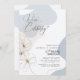 This elegant wedding anniversary invitation combines modern minimalism with romantic details. Curving abstract shapes in soft dusty blue and beige tones, create a contemporary backdrop for delicate gold floral line art and stylish typography. The front highlights the celebration with bold script lettering, while the back features a custom monogram and a heartfelt quote. Perfect for couples marking their 50th anniversary or any milestone celebration, this design blends sophistication with a warm, personal touch. Search ID1168 to see all the products in this enchanting collection.