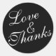 Cursive Love & Thanks Wedding Black & White Classic Round Sticker