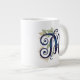 Cursive M – Elegant Blue & Gold Monogram Large Coffee Mug