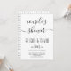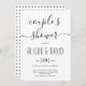 Cursive script calligraphy wedding couples shower invitation. The back includes a black and white geometric pattern.