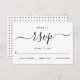 Cursive script handwritten style calligraphy black and white wedding RSVP card. The back includes a black and white geometric pattern.