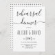 Cursive script ctypography wedding rehearsal dinner invitation. The back includes a black and white geometric pattern.
