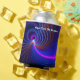 Science tells us that space is curved. And so it is. A multi-colour fractal image of concentric loops superimposed on a starry background. Add your own text.