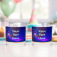 A multi-colour fractal image of concentric loops superimposed on a starry background. Customise by adding your own text.