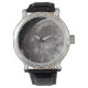 Curve of the Moon with an image of the moon against a black sky. Outer circle gives time increments. A perfect watch for astronomers or astronomy enthusiasts.