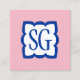 Curvy Box 03 - Initials - Navy Blue and Pink Square Business Card