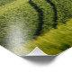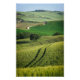 Photo print of an almost abstract landscape with curvy green lines in the barley fields between Pienza and San Quirico d'Orcia in the Val d'Orcia valley in Tuscany, Italy.