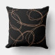 This cushion design showcases an abstract pattern of flowing, interconnected loops in a soft beige or pink hue against a striking black background. The minimalist style emphasizes elegance and modernity, creating a sense of fluidity and movement. The playful curves add a dynamic touch, making it a perfect accent piece for any contemporary living space. The combination of colours and shapes invites a cosy yet sophisticated vibe, enhancing the overall aesthetic of home decor while providing comfort and style.