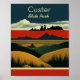 This poster captures the beauty of Custer State Park in South Dakota. The park is home to towering granite peaks, crystal-clear mountain lakes, and lush pine forests. Visitors can hike, bike, camp, fish, swim, and explore the park's many wonders.
