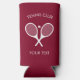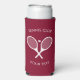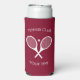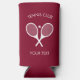 Custimizable Modern Burgundy White Tennis Racket Seltzer Can Cooler
