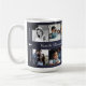 "We are family name and this is our story since year" handwriting custom white calligraphy script (changeable text) and your ten family images over a dark midnight navy blue chalkboard background making a beautiful 10 photo collage mug to mark your anniversary with a keepsake gift or just sip your favourite coffee at home! +++++++++++ Easy to personalise with your custom square images and text!