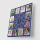 Custom 12 Family Photo Collage Blue Roman Numeral Square Wall Clock