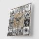 Custom 12 Photo Collage Family Love Reclaimed Wood Square Wall Clock