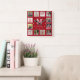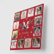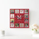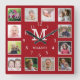 Custom 12 Photo Collage Family Name Monogram Red Square Wall Clock