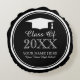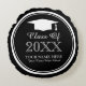 Custom 2025 Graduation party favour throw pillow for graduates. Create your own cushion with personalised high school name and class of year 2021 2022 etc. Cool typography design with graduation hat / cap. Also useable for grad reunion parties. Customisable background colour to match your sofa, bed or couch.  Black and white template.