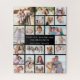 Custom 21 Photo Collage Personalised Black Jigsaw Puzzle. Easily create a fun, memorable activity with this keepsake photo puzzle utilising this easy-to-upload photo collage template with 21 pictures in various shapes and sizes and personalised with your custom title and text in your choice of font styles and colours and background colour (shown in white on black) is ideal for anyone or any special occasion. OPTIONS: The sample is shown in the 16x20" size with 520 pieces; other options are available on the ordering page. ASSISTANCE: For help with design modification or personalisation, contact the designer BEFORE ORDERING via the Zazzle Chat MESSAGE tab below or email makeitaboutyoustore@gmail.com.