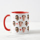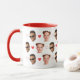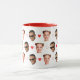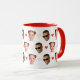 Valentine's Day mug for a girlfriend or boyfriend, personalized with 2 cut-out face photos of the couple. Design with romantic little red hearts.