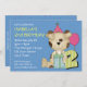 This cute kids second birthday party invitation features a a spotted puppy dog wearing a party hat on a blue background with dots and a big number 2. Can be used as a thank you card, a party invitation, an announcement and more. Completely customisable.