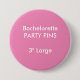 Custom 3" PALE LIGHT BABY PINK Large Round Bachelorette Party Pin for bride, bridesmaids, mother-of-the-bride names, jokes, fun at the bridal shower, bechelorette night, weekend or party, or wedding to fully personalise. Create your own, make your own, design your own, upload your own photo, design, or use multi font text to customise.